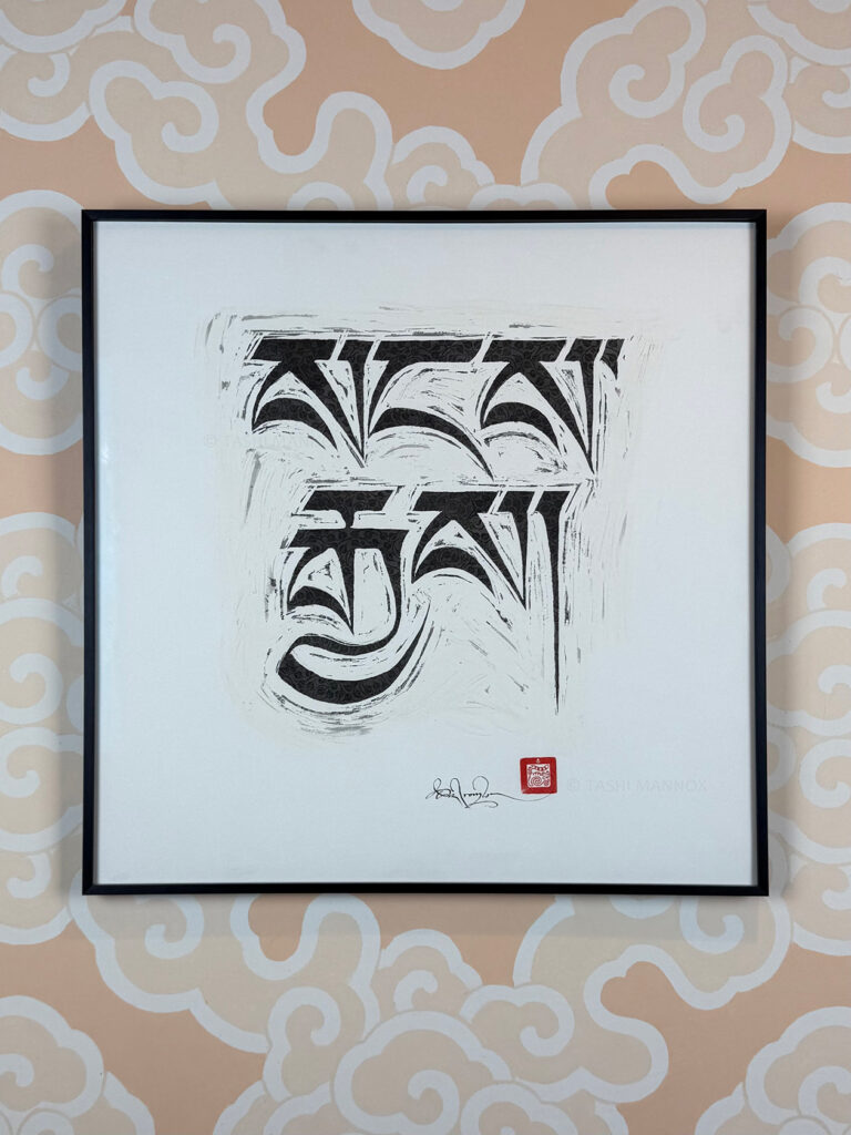 This piece was especially created for and as featured in ‘Sacred Scripts’ – A Meditative Journey Through Tibetan Calligraphy.